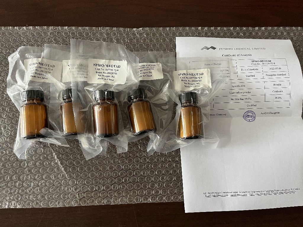 1Spiro-OMeTAD heeft een hoge dragermobiliteit, wat betekent dat de lading in de batterij sneller van de lichtgevoelige laag naar de elektrode kan worden overgedragen.verbetering van de efficiëntie van de batterij.